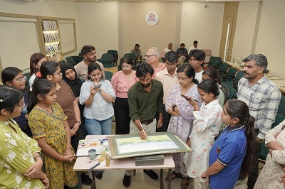 कार्यक्रम में मुख्य अतिथि अनुभवी कलाकार श्री राम बरखाने जी ने चारकोल पोर्ट्रेट,श्री योगेश यादव जी ने वॉटर कलर तथा श्री रविंद्र शंकर रॉय जी ने प्रिंटमेकिंग की तकनीकों पर मार्गदर्शन देते हुए अपने अनुभव साझा किए।