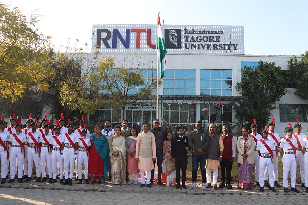 भोपाल : 27 जनवरी/ रबीन्द्रनाथ टैगोर विश्वविद्यालय में 76वां गणतंत्र दिवस समारोह हर्षोल्लासपूर्वक मनाया गया। इस अवसर पर विश्वविद्यालय के उपकुलपति डॉ. संजीव गुप्ता और कुलसचिव डॉ. संगीता जौहरी ने ध्वज फहराया। इसके उपरांत विश्वविद्यालय के एनसीसी नेवल विंग के ऑफिसर सब लेफ्टिनेंट मनोज सिंह मनराल और इंस्ट्रक्टर दुर्गा वर्मा के मार्गदर्शन में एनसीसी कैडेट्स ने राष्ट्रध्वज को गार्ड ऑफ ऑनर दिया।
