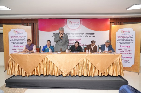 भोपाल : 20 दिसंबर/ ‘विश्व रंग श्रीलंका’, ‘आरंभ – मुंबई’ और ‘विश्व रंग भोपाल 2025’ जैसे ऐतिहासिक आयोजनों की अपार सफलता और विश्वरंग के सातवें संस्करण की वैश्विक पहुँच को साझा करने के उद्देश्य से शनिवार को होटल पलाश रेसीडेंसी, भोपाल में ‘विश्व रंग वार्ता’ का आयोजन किया गया। यह आत्मीय संवादात्मक कार्यक्रम विश्वरंग फाउंडेशन एवं रबीन्द्रनाथ टैगोर विश्वविद्यालय के तत्वावधान में आयोजित किया गया, जिसमें साहित्य, कला और संस्कृति से जुड़े वरिष्ठ रचनाकारों, आयोजकों और सहयोगियों ने सहभागिता की।