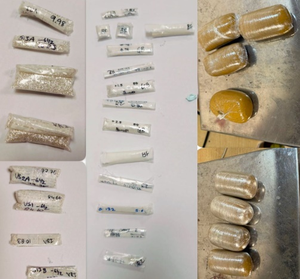 पहले मामले में, विशेष जानकारी के आधार पर सीमा शुल्क अधिकारियों ने बैंकॉक से आ रहे दो यात्रियों को रोका। जांच के दौरान अधिकारियों ने संदिग्धों के शरीर के अंदरूनी हिस्सों में छिपाया गया 24 कैरेट कच्चे सोने का पाउडर (गोल्ड डस्ट/स्वर्ण कण) बरामद किया।