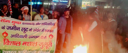 रांची, 16 जनवरी (आईएएनएस)। झारखंड के खूंटी जिले में चर्चित आदिवासी नेता और पड़हा राजा सोम मुंडा की हत्या के विरोध में आदिवासी संगठनों ने 17 जनवरी को झारखंड बंद का आह्वान किया है। बंद की पूर्व संध्या पर शुक्रवार शाम रांची, खूंटी, सरायकेला सहित कई जिलों में आदिवासी संगठनों के कार्यकर्ताओं ने मशाल जुलूस निकालकर अपना विरोध दर्ज कराया।