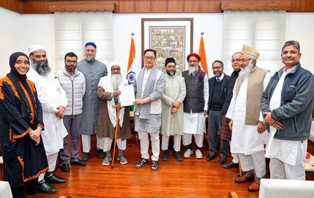 नई दिल्ली, 11 दिसंबर (आईएएनएस)। ऑल इंडिया मुस्लिम पर्सनल लॉ बोर्ड के एक प्रतिनिधिमंडल ने गुरुवार को केंद्रीय अल्पसंख्यक कार्य मंत्री किरेन रिजिजू से मुलाकात की।