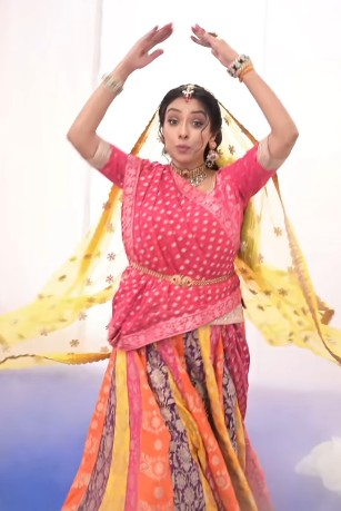 वीडियो में उन्होंने मल्टीकलर के लहंगे के साथ गुलाबी रंग का ब्लाउज पेयर किया है। वहीं, पीले रंग की चुनरी को खूबसूरती से सजाया है। माथे पर बिंदी, कानों में झुमके और ढीली चोटी में बंधे बाल उनके पारंपरिक अंदाज को निखार रहे हैं।