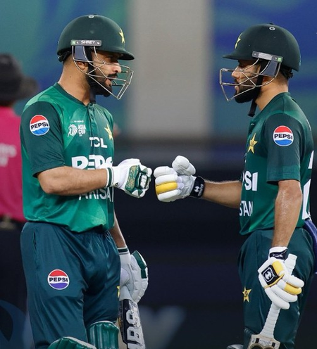 पाकिस्तान की शुरुआत बेहद खराब रही। 4 के स्कोर पर टीम ने साहिबजादा फरहान के रूप में अपना पहला विकेट गंवाया। तीसरे नंबर पर बल्लेबाजी के लिए आए सईम अयूब एक बार फिर फ्लॉप रहे और बिना खाता खोले आउट हो गए। विकेट गिरने का सिलसिला लगातार जारी रहा। फखर जमान 13, कप्तान आगा 19 और हुसैन तलत 3 रन बनाकर आउट हो गए। पाकिस्तान 49 के स्कोर पर अपने 5 विकेट गंवा चुका था।ऐसा लग रहा था कि स्कोर मुश्किल से 100 के आसपास पहुंचेगा।