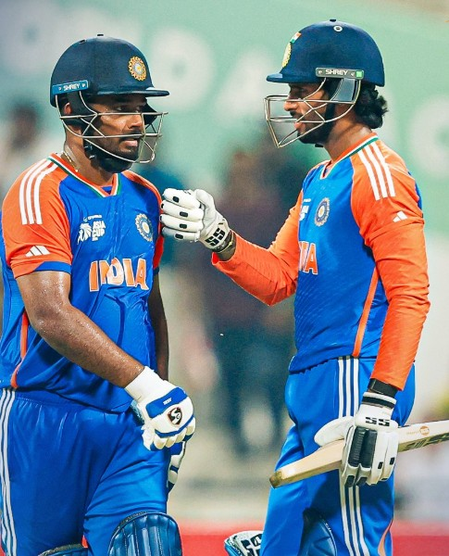 इस बीच संजू सैमसन ने अपना अर्धशतक पूरा किया। तीसरे नंबर पर बल्लेबाजी करने उतरे सैमसन ने 45 गेंद पर 3 चौके और 3 छक्के लगाते हुए 56 रन की पारी खेली। तिलक वर्मा ने 18 गेंद पर 29 रन की पारी खेली।
