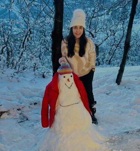 अभिनेत्री मूल रूप से शिमला की रहने वाली हैं, लेकिन शादी के बाद वे अपने पति और परिवार संग विदेश में रहती हैं। मंगलवार को अभिनेत्री ने इंस्टाग्राम पर एक तस्वीर पोस्ट की। इस तस्वीर में वे बर्फ से बनी स्नो गर्ल के पास खड़ी हैं। वे गर्म कपड़ों में मुस्कुरा रही हैं और उनकी डिम्पल वाली स्माइल सबको भा रही है।