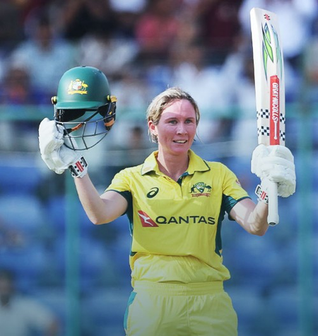 मूनी पारी की शुरुआत से ही भारतीय गेंदबाजों पर कहर बनकर टूटीं। अगर वह अंत तक क्रीज पर रुकतीं, तो ऑस्ट्रेलिया निश्चित रूप से वनडे क्रिकेट का अपना सबसे बड़ा स्कोर बना जाती। मूनी ने 75 गेंद पर 23 चौके और 1 छक्के की मदद से 138 रन की पारी खेली। वह रन आउट हो गईं। अपनी पारी के दौरान मूनी ने पेरी के साथ तीसरे विकेट के लिए 106 और एश्ले गार्डनर के साथ चौथे विकेट के लिए 82 रन की अहम साझेदारी की।