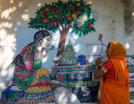 पूर्वी भारत की संथाल कला मिट्टी के रंगों और प्राकृतिक वस्तुओं से बनाई जाती है। इसमें जनजातीय जीवन के सरल लेकिन गहरे पहलुओं को दिखाया जाता है। बिहार की मधुबनी चित्रकला की तो बात ही निराली है। यह कला घर की दीवारों या कपड़ों पर बनाई जाती है। इसमें देवी-देवताओं, विवाह और त्योहारों के दृश्य रंग-बिरंगे रूप में उकेरे जाते हैं।