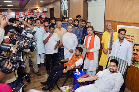 पटना, 17 सितंबर (आईएएनएस)। देश के प्रधानमंत्री नरेंद्र मोदी के 75वें जन्मदिन के अवसर पर आज बिहार भाजपा द्वारा सेवा पखवाड़ा कार्यक्रम की शुरुआत की गई। सेवा पखवाड़े के तहत आज भाजयुमो बिहार प्रदेश द्वारा रक्तदान शिविर कार्यक्रम का आयोजन किया गया।