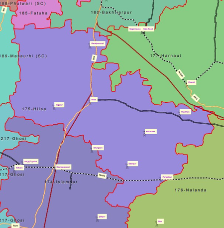 इस विधानसभा क्षेत्र में हिलसा, करायपरसुराय, थरथरी और परवलपुर प्रखंड शामिल हैं। यह कस्बा सोन और फल्गु नदियों के निकट स्थित है, जो इसकी प्राकृतिक सुंदरता को और भी बढ़ाते हैं।