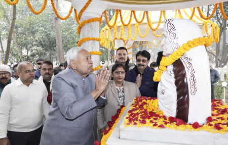 पटना, 1 जनवरी (आईएएनएस)। बिहार के मुख्यमंत्री नीतीश कुमार गुरुवार को अपनी माता परमेश्वरी देवी की पुण्यतिथि के अवसर पर पैतृक गांव कल्याण बिगहा, हरनौत पहुंचे। यहां उन्होंने कविराज रामलखन सिंह स्मृति वाटिका जाकर परमेश्वरी देवी की प्रतिमा पर माल्यार्पण कर उन्हें भावभीनी श्रद्धांजलि अर्पित की।