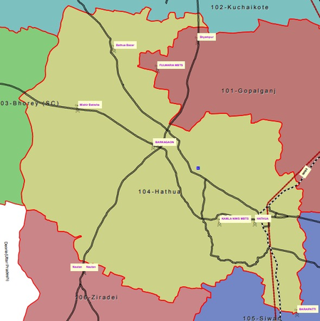 राजनीतिक दृष्टि से देखा जाए तो हथुआ विधानसभा क्षेत्र में हथुआ और फुलवरिया प्रखंडों के अलावा उच्चकागांव ब्लॉक के जमसर, त्रिलोकपुर, मोहैचा और बलेसरा ग्राम पंचायतें शामिल हैं। साथ ही, मीरगंज नगर पंचायत भी इस विधानसभा क्षेत्र का हिस्सा है। यहां लालू प्रसाद यादव का गृह क्षेत्र होने के बाद भी लंबे समय तक राजद को सफलता नहीं मिल सकी।