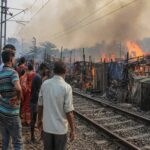 कोलकाता, 25 अप्रैल (आईएएनएस)। शनिवार को पश्चिम बंगाल के दक्षिण 24 परगना जिले के अकरा-संतोषपुर इलाके में 16 बीघा में फैली एक झुग्गी बस्ती में आग लग गई। इस आग की चपेट में आकर झुग्गी के पास से गुजरने वाले दक्षिण उपनगरीय रेलवे सेक्शन के ओवरहेड तार क्षतिग्रस्त हो गए, जिससे बज-बज–सियालदह दक्षिण उपनगरीय सेक्शन पर रेल सेवाएं प्रभावित हुईं और उन्हें फिलहाल निलंबित कर दिया गया है।