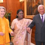 नई दिल्ली, 27 जनवरी (आईएएनएस)। भारत और यूरोपीय संघ (ईयू) के बीच संबंधों में एक ऐतिहासिक क्षण दर्ज हुआ, जब राष्ट्रपति द्रौपदी मुर्मु ने राष्ट्रपति भवन में यूरोपीय परिषद के अध्यक्ष एंटोनियो कोस्टा और यूरोपीय आयोग की अध्यक्ष उर्सुला वॉन डेर लेयेन का गर्मजोशी से स्वागत किया।