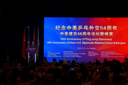 बीजिंग, 24 दिसंबर (आईएएनएस)। चीन और अमेरिका ‘पिंग-पोंग कूटनीति’ की 54वीं वर्षगांठ और चीन और अमेरिका के बीच राजनयिक संबंधों की स्थापना की 46वीं वर्षगांठ मनाने के लिए एक समारोह स्थानीय समय के अनुसार 22 दिसंबर को अमेरिका के कैलिफोर्निया राज्य के लॉस एंजिल्स में आयोजित किया गया। दोनों देशों के खेल, राजनीतिक और व्यापारिक हलकों के सैकड़ों लोगों ने इस कार्यक्रम में भाग लिया।
