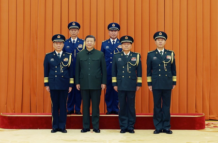 शी चिनफिंग ने जनरल रैंक प्राप्त करने वाले पूर्वी थिएटर कमान के सेनापति यांग चीपिन और मध्य थिएटर कमान के सेनापति हान शंगयान को आदेश पत्र सौंपा और उनको बधाई दी।
