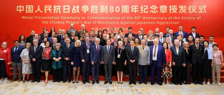 बीजिंग, 4 सितंबर (आईएएनएस)। चीनी वैदेशिक जन मैत्री संघ ने हाल ही में पेइचिंग में एक समारोह आयोजित किया, जिसमें चीनी जनता के जापानी अतिक्रमण विरोधी युद्ध की विजय की 80वीं वर्षगांठ के उपलक्ष्य में स्मारक पदक प्रदान किए गए।