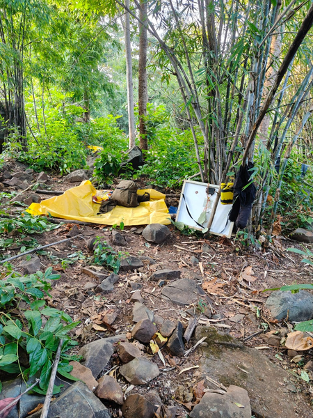 सर्चिंग पार्टी 22 नवंबर को नक्सलियों के डेरे तक पहुंची, जहां पुलिस को देख नक्सली अपने सामान को छोड़कर जंगल की ओर भाग निकले। घटनास्थल से बड़ी मात्रा में दैनिक उपयोग की सामग्री एवं नक्सली सामग्री बरामद की गई, जिनमें नक्सलियों की वर्दी, पिट्ठू बैग, लिखे हुए दस्तावेज एवं डायरियां, वर्दियां, सोलर पैनल एवं चार्जिंग सेट्स, खाना बनाने के बर्तन, टेंट, तिरपाल, वॉकी-टॉकी सेट, विस्फोटक सामग्री और राशन सामग्री हैं।