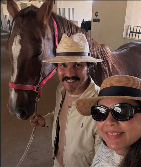 इन तस्वीरों में कपल स्वादिष्ट खाने का आनंद लेते हुए दिख रहे हैं। वहीं, अन्य तस्वीरों में आराम करते, घोड़ों के साथ समय बिताते और खूबसूरत नजारों के बीच हंसते नजर आ रहे हैं।