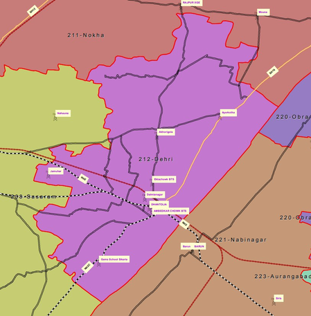 इस विधानसभा क्षेत्र में 9 ग्राम पंचायत शामिल हैं, जिनमें बरांव कला, बेरकप, भैंसहा, भलुआरी, चकनहा, दाहौर, दरिहट, गंगौली, जमुहार, मझियावां, मथुरी, पहलेजा और पतपुरा हैं।