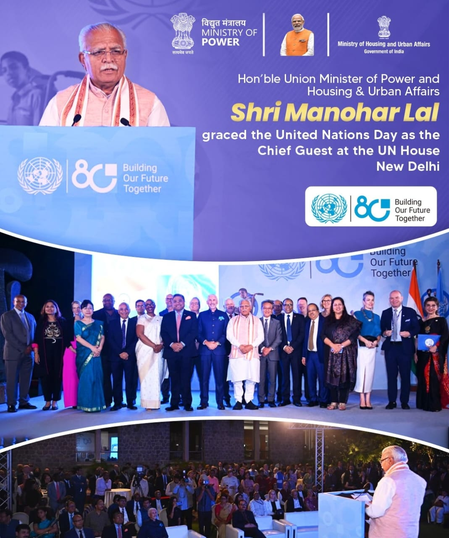 केंद्रीय मंत्री मनोहर लाल 80वें संयुक्त राष्ट्र दिवस समारोह में मुख्य अतिथि के तौर पर शामिल हुए, जहां अपने संबोधन में उन्होंने वैश्विक शांति और विकास को बढ़ावा देने में संयुक्त राष्ट्र की अहम भूमिका पर जोर दिया।