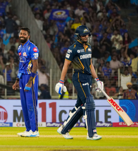 अहमदाबाद, 30 मार्च (आईएएनएस)। मुंबई इंडियंस (एमआई) के कप्तान हार्दिक पांड्या पर शनिवार को नरेंद्र मोदी स्टेडियम में गुजरात टाइटंस (जीटी) के खिलाफ आईपीएल मैच के दौरान धीमी ओवर गति के लिए जुर्माना लगाया गया है।
