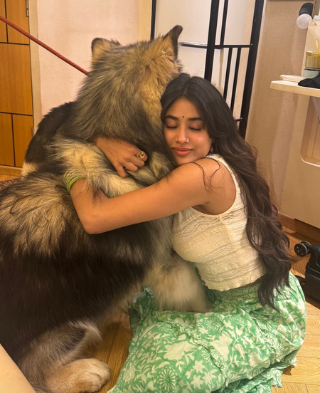 शूटिंग के दौरान जान्हवी से मिलने उनका शिहत्ज़ू पालतू कुत्ता पांडा आया था। उन्होंने अपनी इंस्टाग्राम स्टोरी पर अपने प्यारे डॉगी को गले लगाते हुए एक दिल को छू लेने वाली फोटो पोस्ट की।