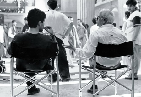 करण ने अपने पिता की एक पुरानी ब्लैक एंड व्हाइट तस्वीर शेयर की, जिसमें वह अपने पिता यश जौहर के पास बैठे हुए नजर आ रहे हैं। यह फोटो किसी फिल्म की शूटिंग के दौरान ली गई प्रतीत होती है।