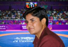 विनेश मंगलवार को सेमीफाइनल में क्यूबा की युस्नीलिस गुज़मैन को 5-0 से हराने के बाद ओलंपिक खेलों के फाइनल में पहुंचने वाली पहली भारतीय महिला पहलवान बन गईं।