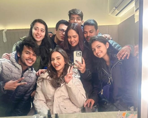 मिरर सेल्फी में रकुल अपनी टीम के सदस्यों के साथ पोज देती हुईं नजर आईं।