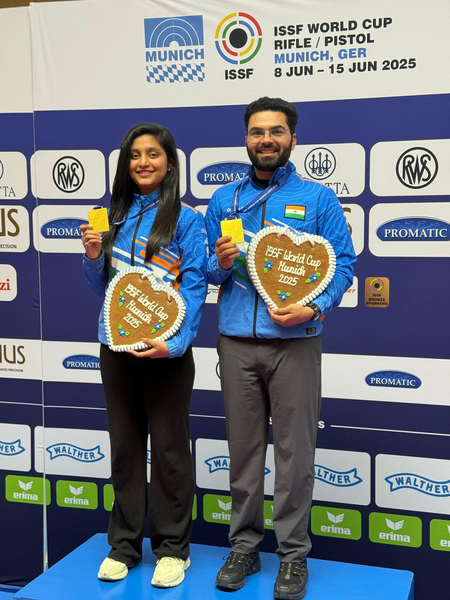 म्यूनिख, 14 जून (आईएएनएस)। आर्य बोरसे और अर्जुन बाबूता की भारतीय जोड़ी ने शनिवार को आईएसएसएफ विश्व कप में 10 मीटर एयर राइफल मिश्रित टीम स्पर्धा में चीन के जिफेई वांग और लिहाओ शेंग को 17-7 से हराकर शानदार प्रदर्शन करते हुए स्वर्ण पदक जीता।