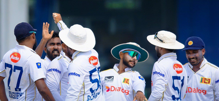 बांग्लादेश 38.4 ओवर में 247 और 115/6 (मुशफिकुर रहीम 26, लिटन दास 13; धनंजय डी सिल्वा 2-13, प्रभात जयसूर्या 2-47) श्रीलंका 116.5 ओवर में 458 रन पर ऑल आउट (पथुम निसंका 158, दिनेश चांदीमल 93; तैजुल इस्लाम 5-131, नईम हसन 3-85)