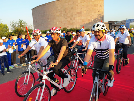 मोटापे से लड़ने और स्वस्थ और सक्रिय जीवनशैली अपनाने के प्रधानमंत्री नरेंद्र मोदी के संदेश को फैलाते हुए मांडविया ने कहा, “साइकिल चलाने से न केवल स्वास्थ्य बेहतर होता है, बल्कि चरित्र का निर्माण भी होता है।”