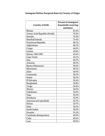 ये आंकड़े दो टेबल में दिखाए गए हैं, जिन्हें मिलाकर एक सिंगल डेटासेट बनाया गया है। ये अमेरिका में सरकारी मदद पाने वाले प्रवासी परिवारों का हिस्सा दिखाते हैं। यह दर 80 फीसदी से ज्यादा से लेकर 40 फीसदी से थोड़ा कम तक है।