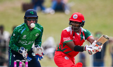 विशाल लक्ष्य का पीछा करने उतरी ओमान की टीम 18 ओवरों में 139 रन पर सिमट गई। इस पारी में आमिर कलीम (50) अर्धशतक लगाने वाले इकलौते बल्लेबाज रहे, जबकि हम्माद ने 37 गेंदों में 7 बाउंड्री के साथ 46 रन बनाए। सुफयान महमूद ने 10 रन का योगदान टीम के खाते में दिया।