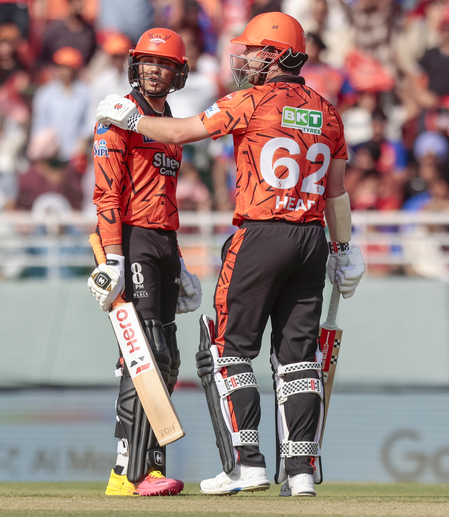 टॉस गंवाने के बाद पहले बल्लेबाजी करने उतरी सनराइजर्स हैदराबाद की टीम को अभिषेक शर्मा और ट्रेविस हेड ने तूफानी शुरुआत दी। दोनों ने मिलकर पहले विकेट के लिए 8.1 ओवर में 120 रन जोड़े। अभिषेक ने ताबड़तोड़ अंदाज में बल्लेबाजी करते हुए सिर्फ 28 गेंदों में 74 रनों की धमाकेदार पारी खेली। अपनी इस पारी में बाएं हाथ के बल्लेबाज ने 264 के स्ट्राइक रेट से खेलते हुए 5 चौके और 8 छक्के लगाए। वहीं, हेड ने 23 गेंदों में 38 रनों का योगदान दिया। कप्तान ईशान किशन अच्छी शुरुआत का फायदा उठाने में नाकाम रहे और 17 गेंदों में 3 चौके और एक छक्के के साथ 27 रन बनाने के बाद अर्शदीप सिंह का शिकार बने।