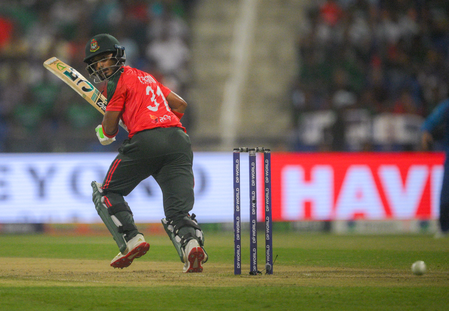 बांग्लादेश को सैफ हसन और तंजीद हसन की सलामी जोड़ी ने शानदार शुरुआत दिलाई। दोनों खिलाड़ियों ने 18.1 ओवरों में 105 रन की साझेदारी की। सैफ 55 गेंदों में 3 चौकों के साथ 36 रन बनाकर पवेलियन लौटे।