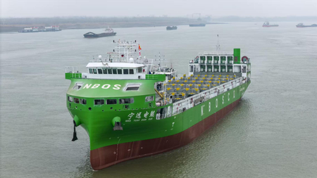 चीन का पहला और विश्व का सबसे बड़ा विशुद्ध विद्युत संचालित स्मार्ट कंटेनर जहाज डिलीवर