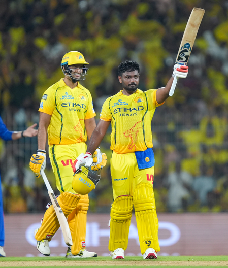 मैच की बात करें तो 52 गेंदों पर शतक लगाने वाले सैमसन ने 56 गेंदों पर नाबाद 115 रन की पारी खेली। सैमसन की पारी की बदौलत सीएसके ने 212 रन बनाए और डीसी को 189 रन पर रोककर 23 रन से जीत हासिल की।