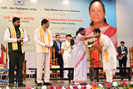 राष्ट्रपति ने कहा कि समाज के सभी वर्गों की वृद्धि, सुरक्षा और तकनीकी विकास से देश की प्रगति में तेजी आएगी। इस क्षेत्र में देश के सभी विश्वविद्यालयों की महत्वपूर्ण भूमिका है। समावेशी विकास, नवाचार और सामाजिक परिवर्तन के उत्प्रेरक के रूप में कार्य करने की विश्वविद्यालयों की विशेष जिम्मेदारी है। आलोचनात्मक सोच, नैतिक नेतृत्व और स्थानीय एवं वैश्विक चुनौतियों का समाधान करने वाले अनुसंधान को बढ़ावा देकर उच्च शिक्षा संस्थान एक ऐसे भविष्य का निर्माण कर सकते हैं जो टिकाऊ, न्यायसंगत और मानवीय मूल्यों पर आधारित हो। उन्होंने विश्वास व्यक्त किया कि फकीर मोहन विश्वविद्यालय अपनी शैक्षणिक दृष्टि और सामुदायिक भागीदारी के माध्यम से इस दिशा में एक परिवर्तनकारी भूमिका निभाएगा।