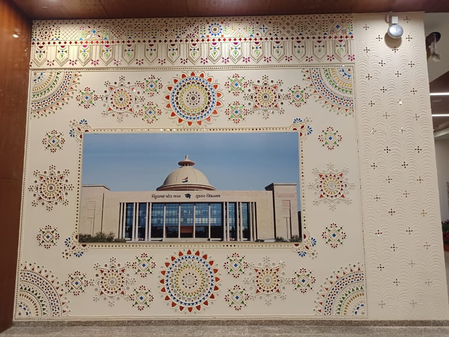 राज्य द्वारा संचालित गुजरात राज्य हथकरघा और हस्तशिल्प विकास निगम लिमिटेड (गर्वी गुर्जरी) के समन्वय से शुरू की गई इस पहल के तहत परिसर में तीन प्रमुख कला रूपों को शामिल किया गया है: कच्छ की मिट्टी के दर्पण का काम, छोटा उदेपुर की वारली कला, और अहमदाबाद की माता नी पछेड़ी, जो कलमकारी शैली की एक पारंपरिक चित्रकला है।