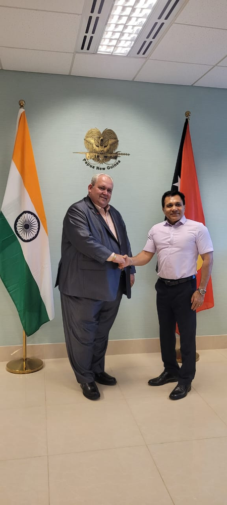 पोर्ट मोरेस्बी, 11 फरवरी (आईएएनएस)। पापुआ न्यू गिनी में भारत के उच्चायुक्त राजीव कुमार ने बुधवार को देश के विदेश मंत्री जस्टिन तकाचेंको से मुलाकात की, जिसमें दोनों पक्षों ने आपसी रिश्तों को मजबूत करने पर चर्चा की।