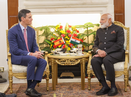 नई दिल्ली, 18 फरवरी (आईएएनएस)। प्रधानमंत्री नरेंद्र मोदी ने बुधवार को नई दिल्ली में स्पेन के राष्ट्रपति पेड्रो सांचेज के साथ बैठक में द्विपक्षीय मुद्दों पर बात की। दोनों ने व्यापार, अर्थव्यवस्था, स्वास्थ्य, डिजिटल टेक्नोलॉजी, इनोवेशन और कई दूसरे जरूरी सेक्टर्स में सहयोग बढ़ाने के तरीकों पर चर्चा की। प्रधानमंत्री ने बाद में कहा बैठक काफी अच्छी रही।