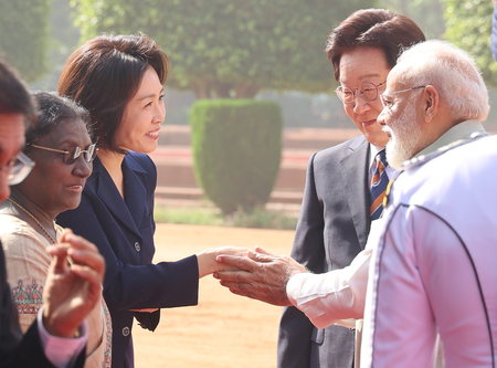 इससे पहले दिन में फर्स्ट लेडी किम और राष्ट्रपति ली जे म्युंग ने दिल्ली के राजघाट जाकर महात्मा गांधी को श्रद्धांजलि दी।