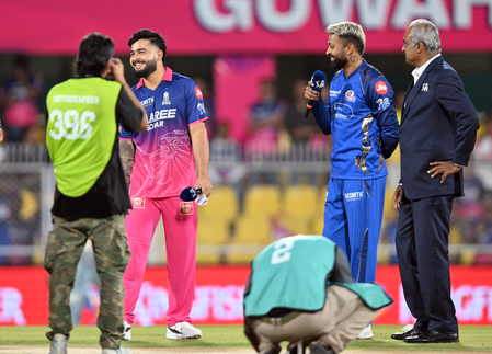 गुवाहाटी, 7 अप्रैल (आईएएनएस)। इंडियन प्रीमियर लीग (आईपीएल) 2026 में मंगलवार को बारिश से प्रभावित मुकाबले में मुंबई इंडियंस (एमआई) ने राजस्थान रॉयल्स (आरआर) के खिलाफ टॉस जीतकर गेंदबाजी का फैसला लिया है। बारिश के चलते टॉस में 2 घंटे 55 मिनट की देरी हुई। बरसापारा क्रिकेट स्टेडियम में जारी इस मैच में 9-9 ओवरों की कटौती की गई।