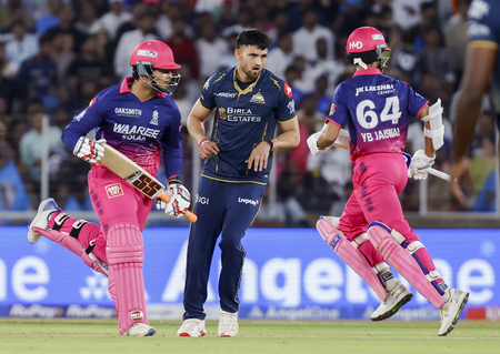 शनिवार को नरेंद्र मोदी स्टेडियम में जारी आईपीएल 2026 के 9वें मुकाबले में टॉस जीतकर बल्लेबाजी चुनते हुए राजस्थान रॉयल्स ने 20 ओवरों में 6 विकेट खोकर 210 रन बनाए। जायसवाल और सूर्यवंशी की जोड़ी ने 6.2 ओवरों में 70 रन की साझेदारी की।