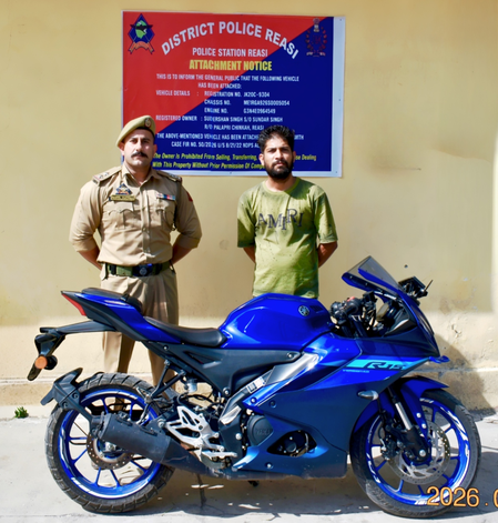 रियासी पुलिस की ओर से मिली जानकारी के अनुसार, वरिष्ठ पुलिस अधीक्षक (एसएसपी) रियासी मुकुंद तिबरेवाल के नेतृत्व में पुलिस ने एनडीपीएस एक्ट के तहत दर्ज एक मामले की जांच के दौरान यह कार्रवाई की। पुलिस थाना रियासी में दर्ज एफआईआर संख्या 50/2026, जो एनडीपीएस एक्ट 1985 की धारा 8/21/22 के तहत दर्ज की गई थी, की जांच में सामने आया कि आरोपी सुदर्शन सिंह ने नशीले पदार्थों की तस्करी से अर्जित धन से एक मोटरसाइकिल (रजिस्ट्रेशन नंबर जेके20सी-9304) खरीदी थी।