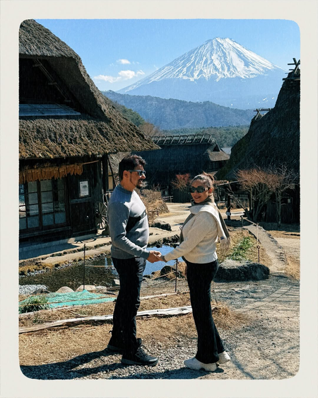 एक्ट्रेस ने फोटो शेयर करते हुए पोस्ट कैप्शन में लिखा, “फूजी: परंपराओं, मंदिरों, बर्फ और समुराई से भरे एक सक्रिय ज्वालामुखी के शिखर से लिया गया दृश्य।” तस्वीरों में माधुरी पति संग काफी खुश नजर आ रही हैं। कपल पहाड़ की खूबसूरत वादियों में अलग-अलग पोज देते और छुट्टी को काफी इंज्वाई करते दिख रहे हैं।