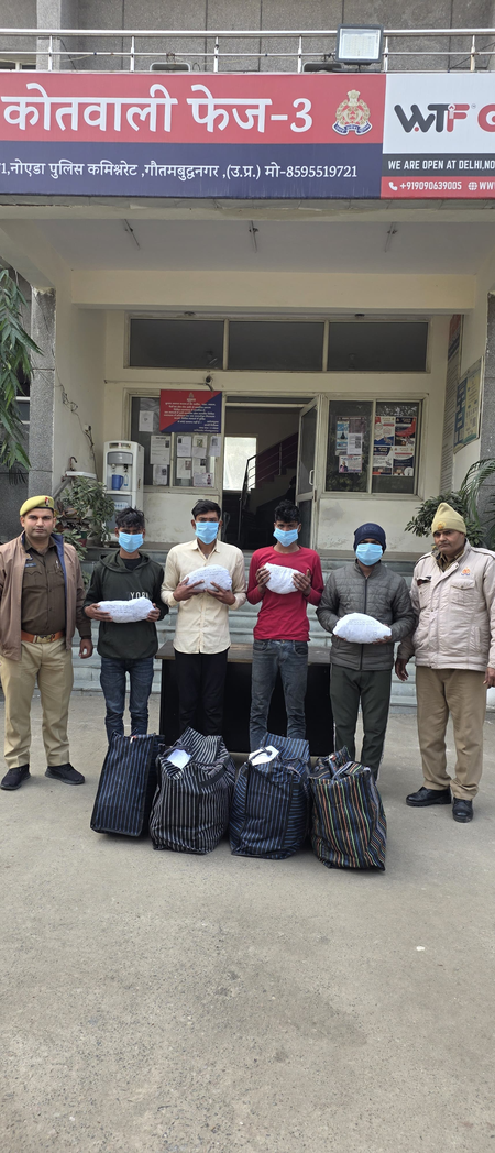 पुलिस के अनुसार, यह कार्रवाई 4 फरवरी 2026 को लोकल इंटेलिजेंस और इलेक्ट्रॉनिक सर्विलांस के आधार पर की गई। सूचना के आधार पर थाना फेस-3 पुलिस टीम ने टीपी नगर चौराहे के पास घेराबंदी कर चारों आरोपियों को दबोच लिया। गिरफ्तार किए गए अभियुक्तों की पहचान सरवन, लव कुमार, नितीश कुमार और राज नारायण कुमार उर्फ छोटू कुमार के रूप में हुई है। गिरफ्तार अभियुक्त बिहार और उत्तर प्रदेश के विभिन्न जिलों के निवासी हैं और वर्तमान में नोएडा के सेक्टर-113 थाना क्षेत्र के अंतर्गत सोरखा और सर्फाबाद गांवों में रह रहे थे।
