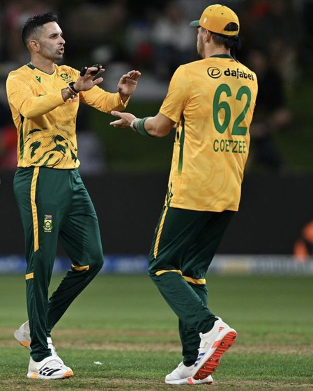 दक्षिण अफ्रीका की तरफ से एन मोकोएना ने 3.3 ओवर में 26 रन देकर 3 विकेट लिए। इसके अलावा गेराल्ड कोएट्जे ने 3 ओवर में 14 रन देकर 2, ऑटनिल बार्टमैन ने 3 ओवर में 22 रन देकर 2 और कप्तान केशव महाराज ने 4 ओवर में 25 रन देकर 2 विकेट लिए।